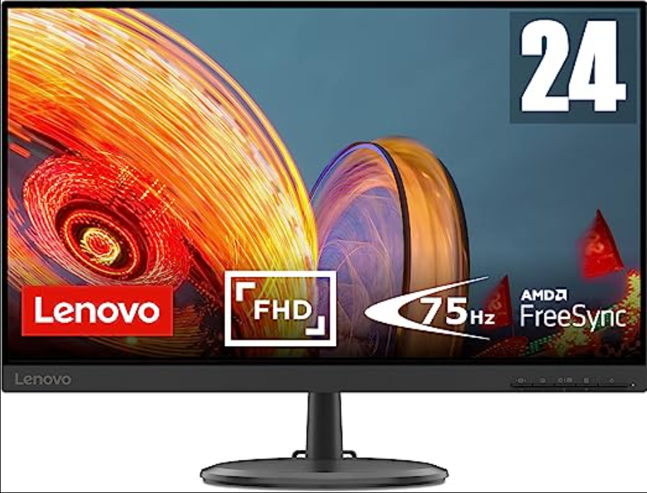 Lenovo C24-25 – Moniteur FullHD 23,8″ (1920×1080 pixels, 16 : 9, 75 Hz, 4 ms, 1000 : 1, ports VGA + HDMI, 3 côtés, sans bordure) Couleur Noir